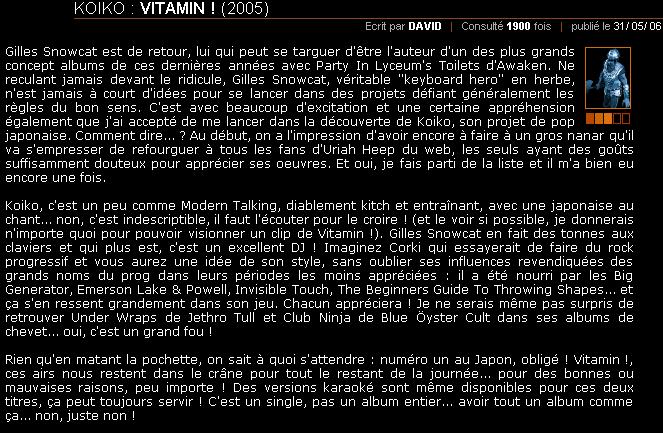 No 1 (instruments), Gilles Snowcat (voice), various |